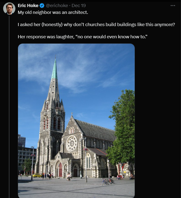 As we near the blessed Christmastide, those twelve (yes, twelve) days of festivity and feasting, I have a few tangentially connected thoughts that seem ripe for scribbling. First, I have a new piece over at TGC Canada: Why We Need Beautiful Churches. This comes out of a growing appreciation for architecture over the last number of years. The article is my attempt to synthesize a whole bunch of different thoughts into a cohesive argument for Christians today about the value and importance of beauty. It’s an exploration of geometry, mysticism, beauty, gothic architecture, and the 20th century aesthetic slippage among most evangelical Protestants that we can and should correct. “To willingly have ugly churches, then, is a kind of inconsistency, if not an untruth.” Extra points to whoever can pick up on the writer whose prose style I (unconsciously) imitated.