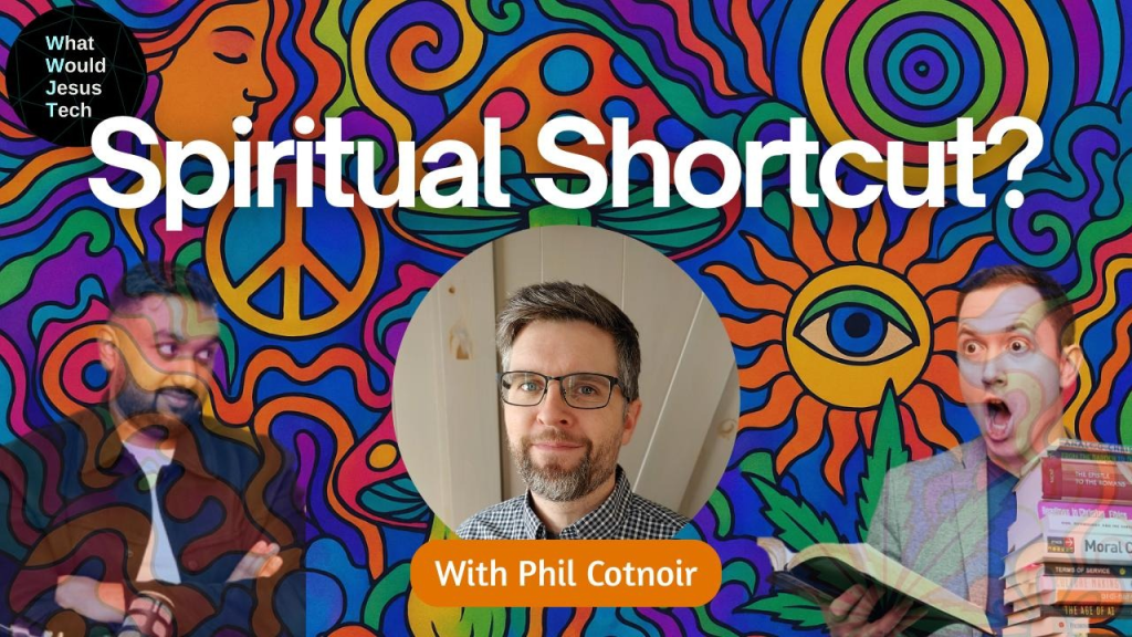 I’m trying to balance my focus on the psychedelics movement with writing and content that covers a far broader array of topics (AKA my interests!). But this last week, the stars aligned for there to be a strong focus on the topic of psychedelics, with my first TGC (USA) article being released as well as a podcast conversation with the fine folks at What Would Jesus Tech (WWJT). Here’s a direct link to the YouTube version of the WWJT episode. I think they did a pretty good job with the podcast episode thumbnail image: